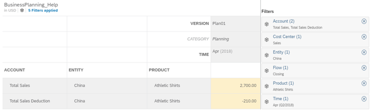 You want to initialize “201801” plan data with "201701" with 5% increase. If there is no filters defined for the other dimensions, all REVENUE records of “201701” for each undefined dimension members will be copied to “201801” with a 5% increase.