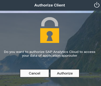 - On the Authorize Client screen, tap Authorize to enable access to your SAP Analytics Cloud data.