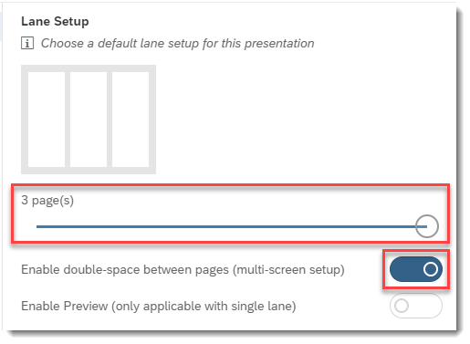 | Layout | Lane Setup Move the slider to choose between different multi-page layout options. For different screen setups, here are some best practices: