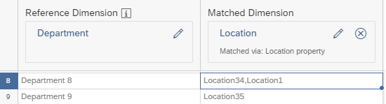 In this example, the dimension Cost Center where the attributes are maintained is the reference dimension and the dimension Profit Center you want to map the reference dimension to is the matched dimension.