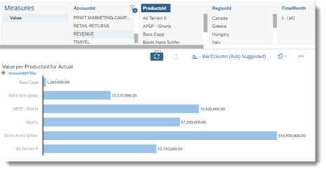 Select the Value measure and REVENUE from the AccountId dimension.