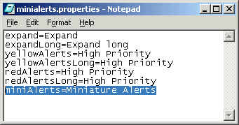 Following figure shows the view definition of minialerts.xml . View has referenceBundle as miniAlerts .