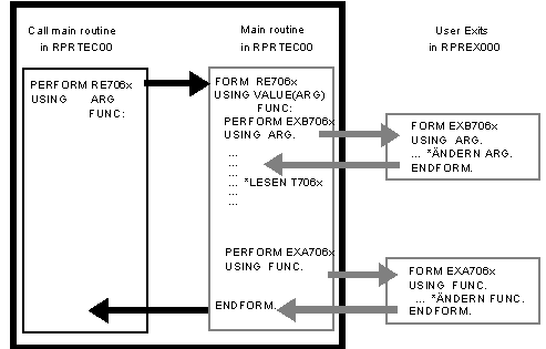 For each T706x table there are the respective routines EXB706x and EXA706x, which can be used as follows: