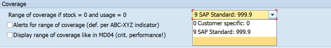 For displaying results in the MRP monitor, on the Key Figures tab, you can select which rules are to apply for calculating the range of coverage.