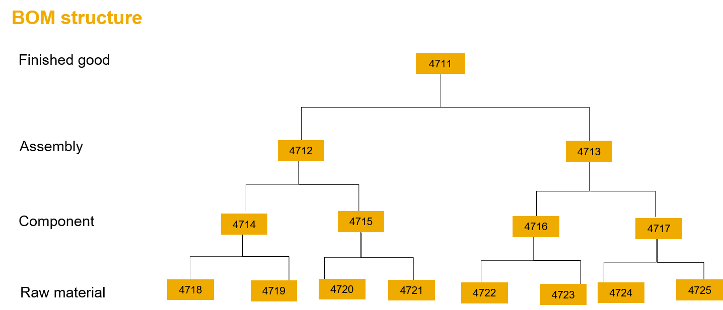 In the case of the individual stocking level, the system checks for each branch of the BOM where stocking is to take place. Stocking does not take place at the level of an entire BOM level, but individually for each material.