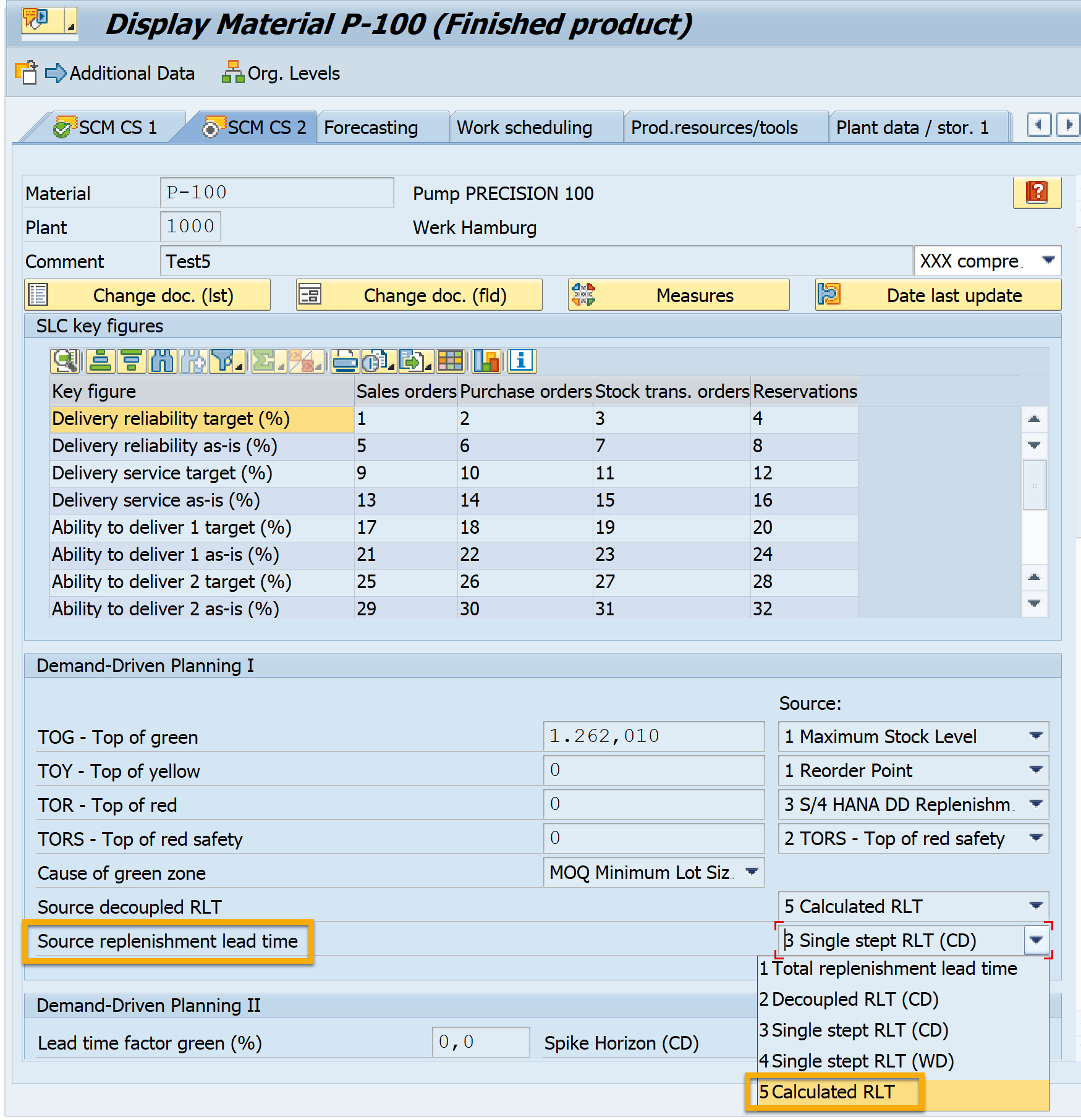 In the enhanced material master view, you can use the dropdown list to select which replenishment lead time is to be used. The following overview illustrates the origin and calculation of the different replenishment lead times.