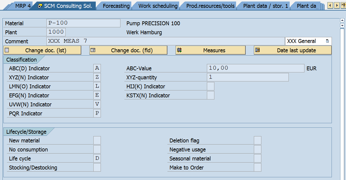 To do so, you first need to select the result lines for which you want to update the classifications. You then choose the SCM CS pushbutton to trigger the update. This updates all classifications in the enhanced material master view.