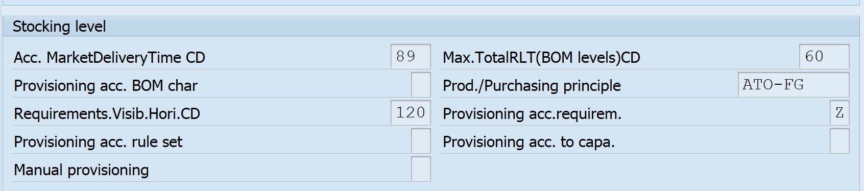 - BOM characteristics: Accepted market delivery time, maximum total replenishment lead time