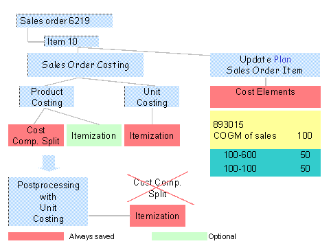 When you create a sales order cost estimate with unit cost estimate , the system always updates an itemization. However, you cannot calculate work in process at target costs or transaction-based scrap variances on the basis of this itemization because the costs in the itemization of a unit cost estimate are not updated based on the transaction.