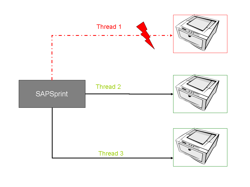 SAPSprint is a multithreaded Windows service. For every output request to a particular device, SAPSprint opens a new thread.