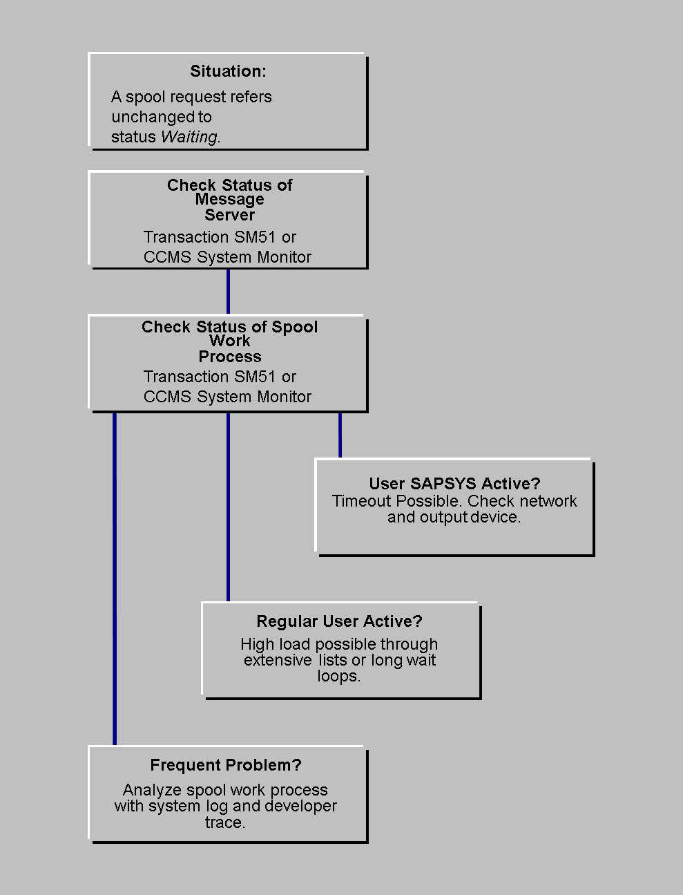 Use the following procedure to determine why an output request has not been processed by the SAP spool system. Generally, an output request should be processed and sent on by the spool system within at most a couple of seconds.