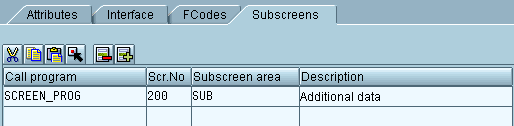- In the BAdI Builder, choose the Subscreens tab, and enter the calling program, the screen number, and the subscreen area.
