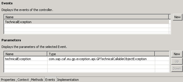 TechnicalExceptionevent, which is inherited from the implemented interface. The event may occur when executing the component controller's methods addItem() , createDescription() and mapInputToOutputParameters() ; therefore, in the catch clause of these methods wdFireEventTechnicalException() is called.
