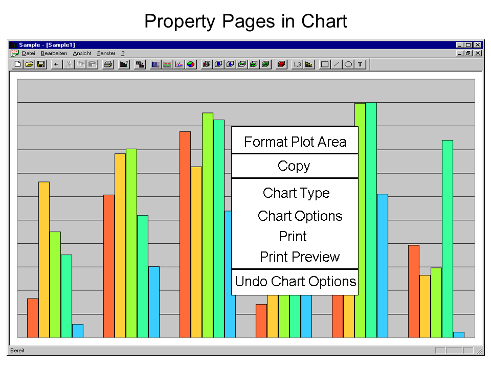 The functions offered by the property pages depend on the context, that is, the selected chart element and the chart type determine which of the formatting functions are offered on the property pages.