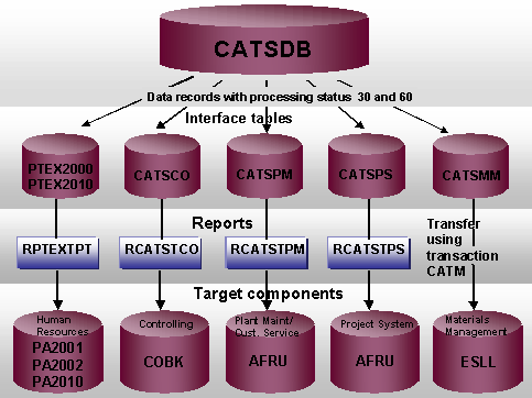 using transaction CATM. The data is transferred from the interface tables to the following tables for the target components: