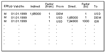 You must specify the relationship of the exchange rate, for example, USD/DEM exchange rates are normally specified 1:1, ITL/DEM exchange rates in the relationship 1000:1.