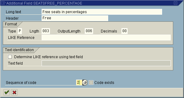 The value of the additional field SEATSFREE_PERCENTAGE is calculated with the predefined additional field SEATSFREE. This is why SEATSFREE_PERCENTAGE must have a higher number (2) than SEATSFREE (1), so that the correct value is in SEATSFREE when calculation takes place. In the ABAP Editor the calculation looks like this:
