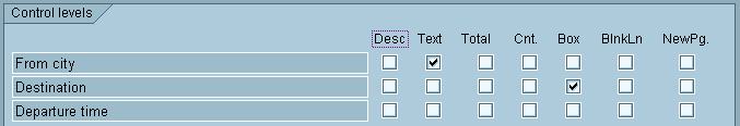 The sort criterion From city now appears at the beginning of a control level instead of on a row.