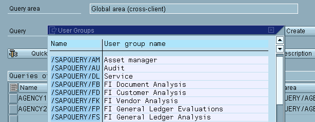 You return to the initial screen. In the lower screen area, the queries are displayed for the selected user group. You are now able to select a query to be executed or processed (see Selecting Queries for Processing).