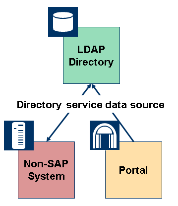 The following figure illustrates a portal with an LDAP directory data source. Other non-SAP systems also use the LDAP directory.