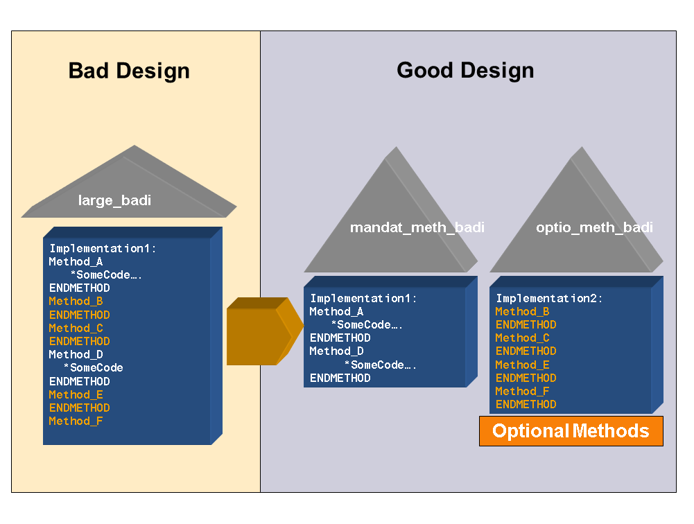- A design which leads to empty implementations of methods is a poor design: you will have unnecessary work with empty methods if there are any changes to the BAdI.