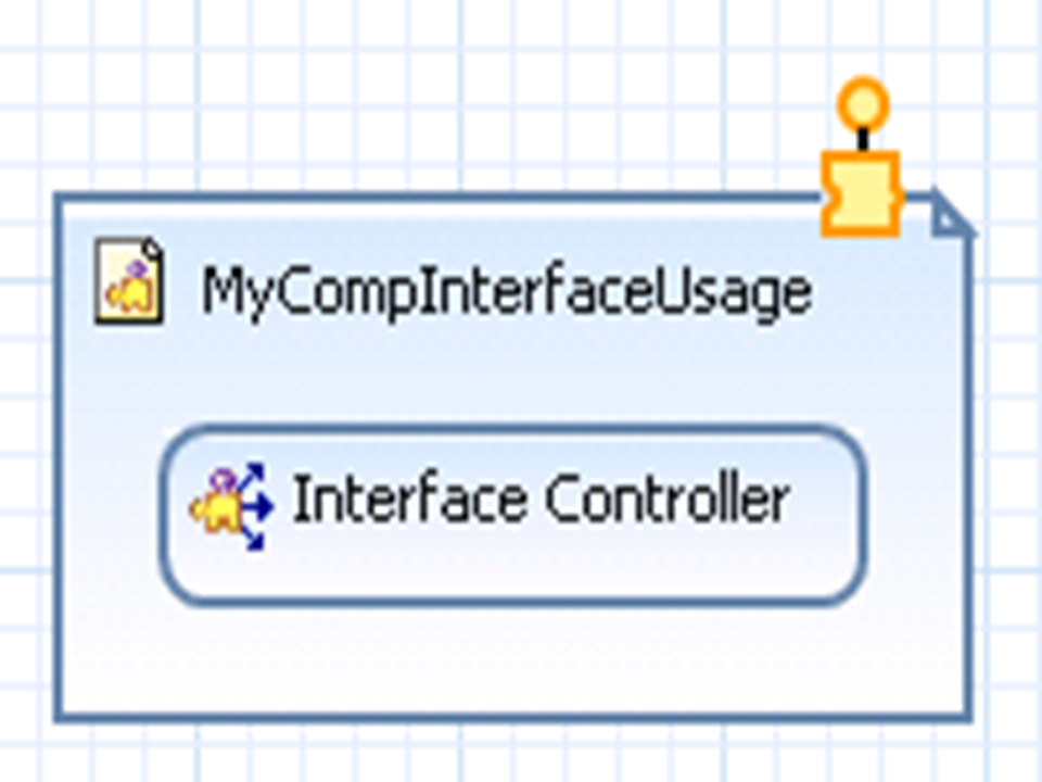 The component usage with its optionally assigned interface controller is displayed with an incoming and an outgoing port for dataflow purposes.