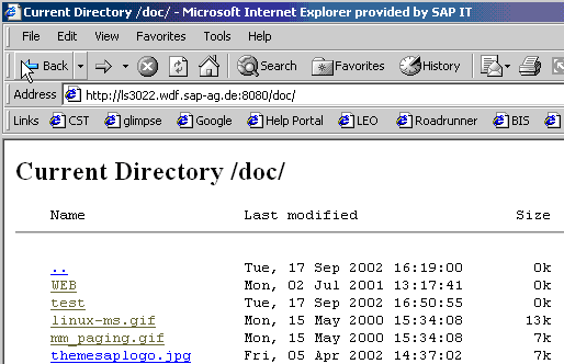To display a file double-click it. If it is a directory again, the contents will be displayed or the file specified with DIRINDEX (in this example, index.htm).