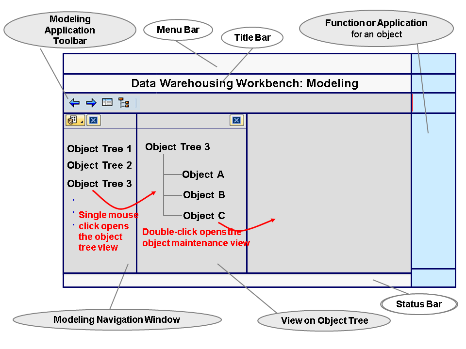 The following graphic shows the structure of Data Warehousing Workbench: Modeling: