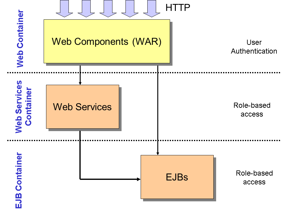 Web applications comprise the highest level of an enterprise application. As such, they are usually the entry point to all other components from the business logic layer of the application. Therefore, authentication of users takes place within the Web Container.
