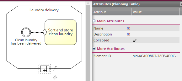 To hint that modeled, visible discretionary tasks are available in the corresponding stage or plan fragment, add an expanded planning table to the element by unchecking the box defining the collapsed attribute in the attribute panel.