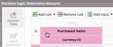 As a result, the decision logic's input data is the sum of all purchased items. You can further define the decision logic.