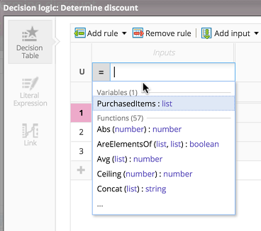 Using Advanced Literal Expressions (Functions in DMN Decision Elements)