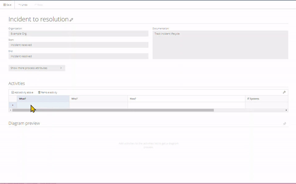 With Show more process attributes, you can also specify the diagram's custom attributes.