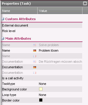 Now you translate diagram elements into the desired languages simultaneously in the attribute panel by simply entering the translations into the corresponding columns and lines.