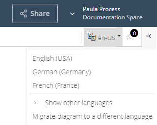 When creating a new diagram, it will be displayed in the default language of the workspace. To change the default language, read the section Set a default language.