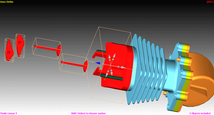 The Manual Explode tool is used to quickly create exploded views from an assembly or selected parts of an assembly. The exploded parts can be linear, radial or both, and either snap or create keyframe animations of the parts moving into the final (exploded) position.