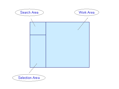 search function. The user interface of these transactions is made up of several screen areas, each of which has specific functions: