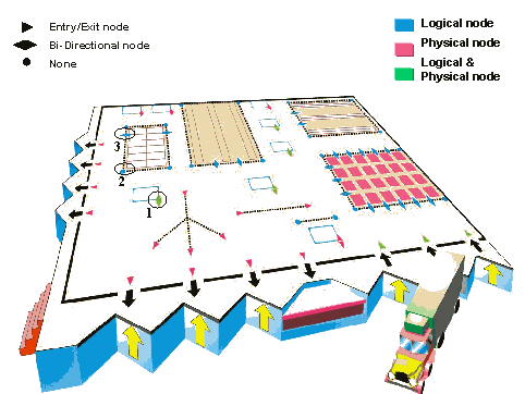 NodeA node is a point in the warehouse through which resources may pass (logical node) or where goods are to be placed (physical node).