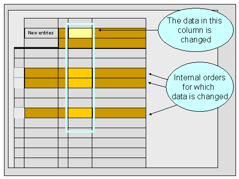 If you selected single columns as well as the internal orders that were selected by row, then these columns are available in collective processing and are changeable (providing they are allowed to be changed).