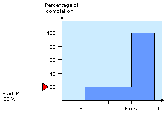 When you use the start-finish rule, the percentage of completion at the start is increased from 0% to an initial value which you have maintained in Customizing for measurement methods. When your project is finished, the POC is 100%. In progress version customizing, you stipulate which set of dates the system should use to determine the POC: