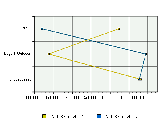 For profile charts you can set the manner in which the lines pass between data points - direct as in the example above, as curved lines, or in varying increments. To do so, choose Data Series Format → <name of series> → Line Type.