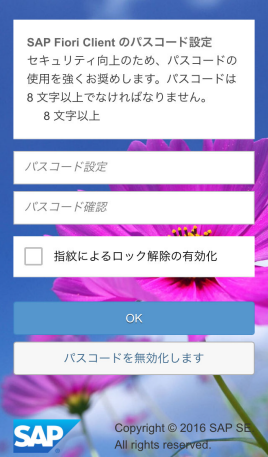 指紋認証が有効化されると、SAP Fiori Client をロック解除するために、機能の初回有効化時に確認した指紋をスキャンするよう求められます。指紋認証が失敗すると、パスコードを入力するよう求められます。指紋認証を無効化するには、指紋によるロック解除を有効化しますチェックボックスを選択解除します。