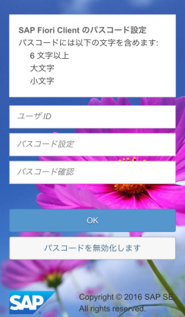 Fiori 環境でのアプリケーション設定後に、アプリケーションを起動すると、SAP Fiori Client ログオン画面が表示されます。