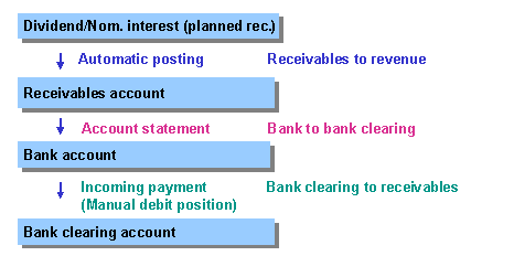 function. (To do this, you have to make certain Customizing settings as described in the prerequisites). The automatic posting function not only posts the existing planned records as actual records, but at the same time generates new incoming payment flows as planned records (or actual records) in a receivables account.