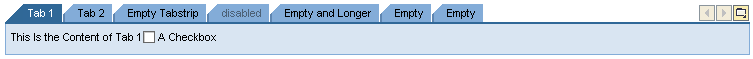 The TabStrip UI element allows the display of a tab page. The user can toggle between several tab pages by selecting a specific tab. The same window is shared by all tab pages and used for displaying the content. The user can display the content of a tab by selecting a tab title.